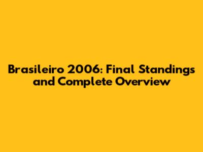 Brasileiro 2006: Final Standings And Complete Overview