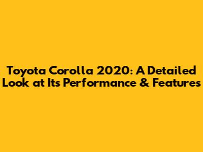 Corolla 2020: A Detailed Look At Its Performance & Features