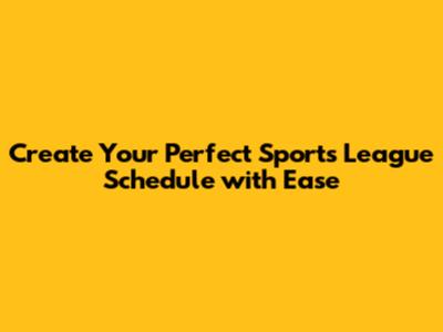 Create Your Perfect Sports League Schedule With Ease