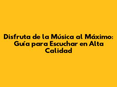 Disfruta De La Música Al Máximo: Guía Para Escuchar En Alta Calidad
