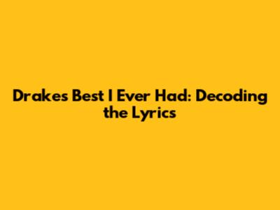 Drake's Best I Ever Had: Decoding The Lyrics