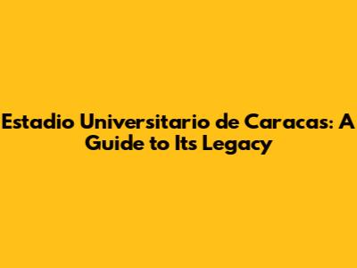 Estadio Universitario De Caracas: A Guide To Its Legacy