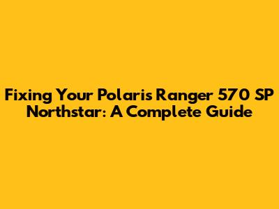 Fixing Your Polaris Ranger 570 SP Northstar: A Complete Guide