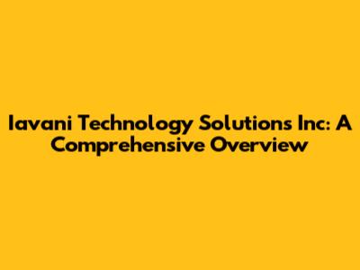 Let's dive into Iavani Technology Solutions Inc, a player in the tech world. In this article, we'll explore everything you need to know about them, from their core services to their impact on the industry. Whether you're a potential client, a tech enthusiast, or just curious, this overview will provide you with a solid understanding of what Iavani Technology Solutions is all about.