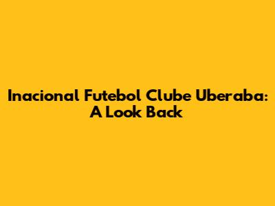 Inacional Futebol Clube Uberaba: A Look Back