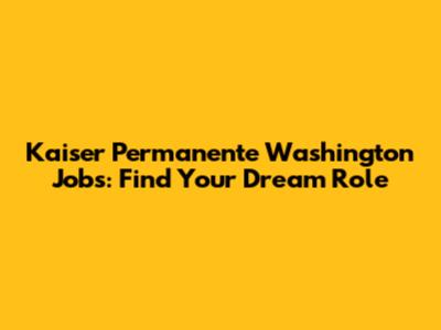 Kaiser Permanente Washington Jobs: Find Your Dream Role