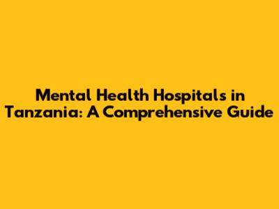 Mental Health Hospitals In Tanzania: A Comprehensive Guide