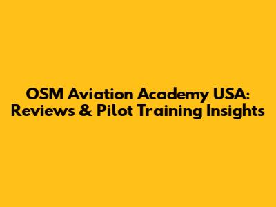 OSM Aviation Academy USA: Reviews & Pilot Training Insights
