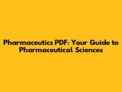 Pharmaceutics PDF: Your Guide To Pharmaceutical Sciences