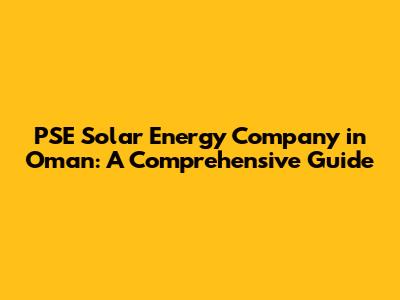 PSE Solar Energy Company In Oman: A Comprehensive Guide