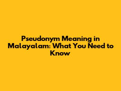 Pseudonym Meaning In Malayalam: What You Need To Know