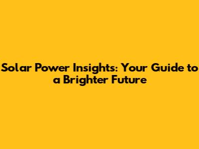 Solar Power Insights: Your Guide To A Brighter Future