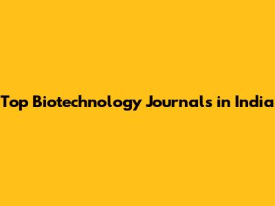 Top Biotechnology Journals In India
